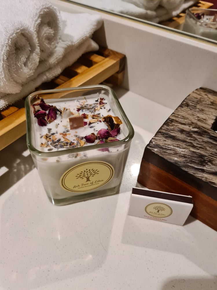 WARNING: For your safety & enjoyment: Never leave a burning candle unattended. Keep out of reach of children and pets. Keep wax free of matches & other flammable material. Please handle with care & do not move candle while it is burning or wax is hot. Protect surface candle is placed on. Keep wick trimmed to 1/4 inch. Burn for only 3 hours at a time and discard when there is less than 1/2 inch of wax left in container. If last 1/2 inch gets too hot, it could ignite. Remember a burning candle is fire! Ash Tree of Eden, the seller, nor manufacturer is responsible for negligence or misuse.